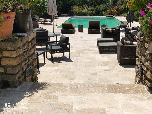 NÎMES ANTIQUE (Maroc): pierre calcaire beige, très similaire en teinte et finitions à la Bourgogne traditionnelle