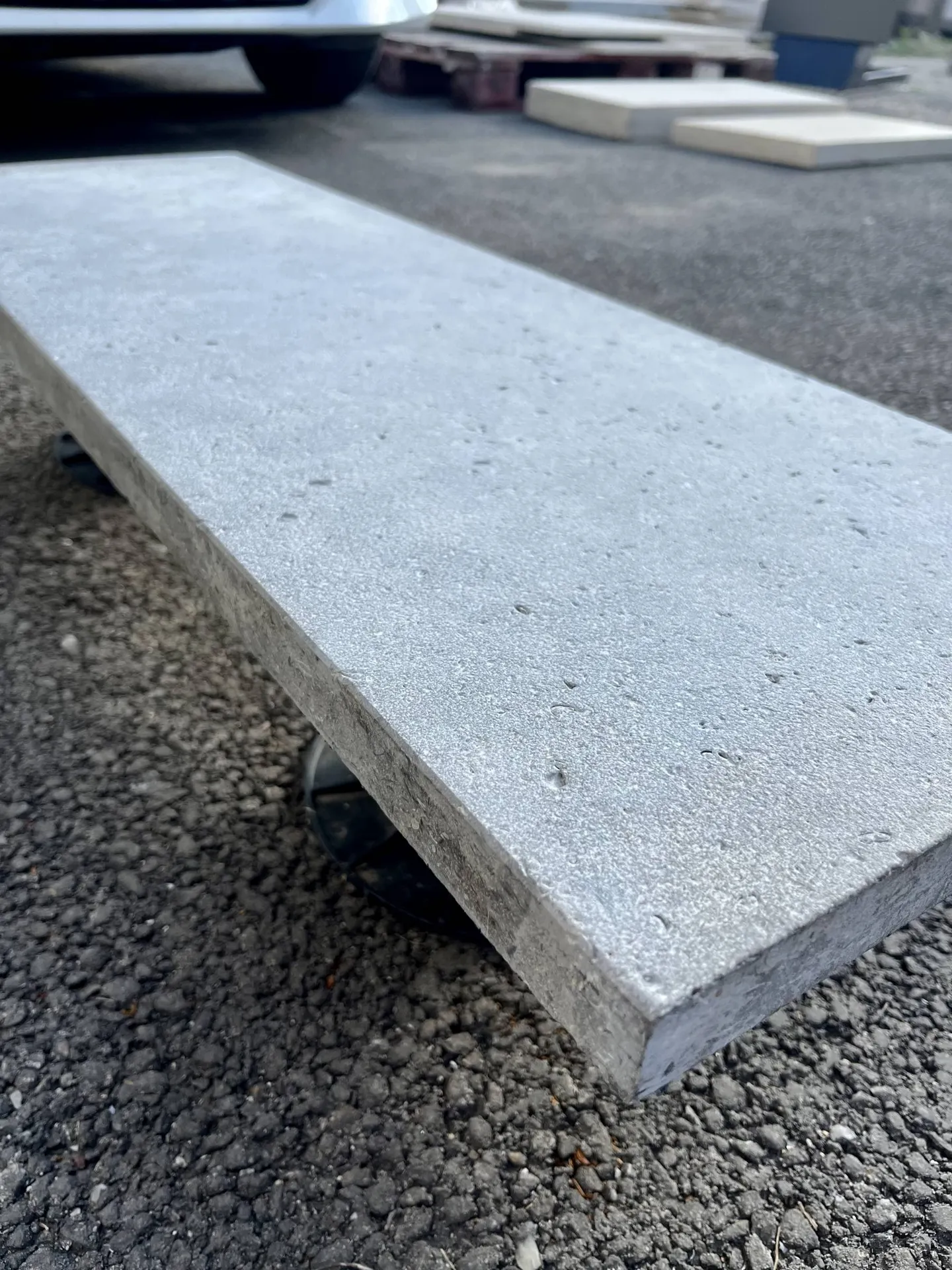 - MARGELLES SAHARA GRISE / MARGELLES PIERRE D’AUXERRE 90 X 30 X 3 CM une face SABLEE + BROSSEE avec un bord droit