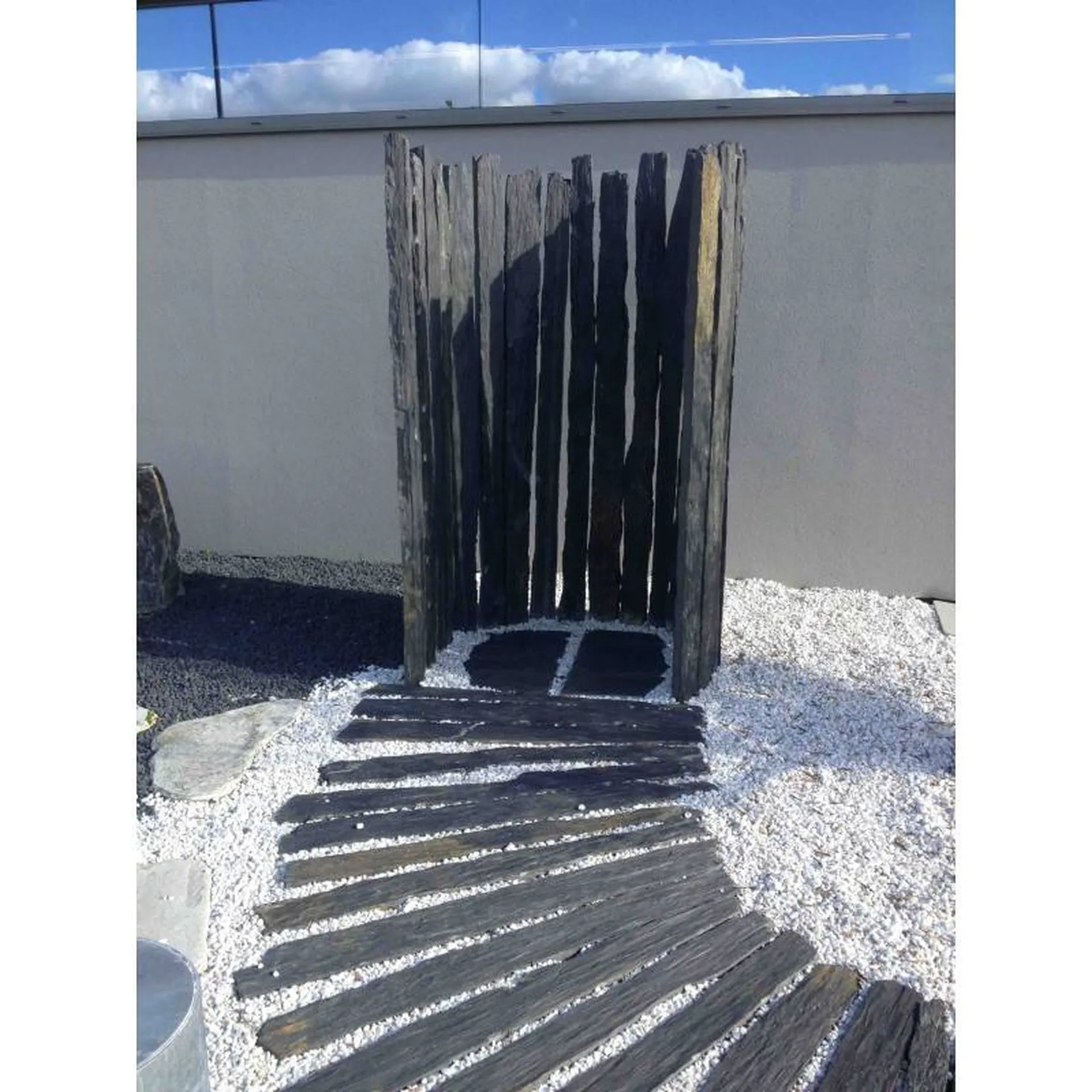 LE PIQUET ARDOISE RUSTIQUE est un élément incontournable dans un jardin, il s’adapte avec toutes les couleurs d’agrégats types galets et graviers.(Marbre blanc pur, paillette ardoise , schiste rouge , pouzzolane, etc...).